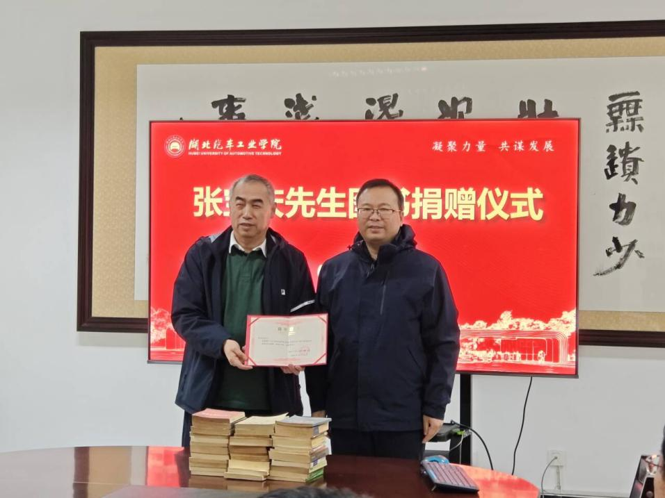 图书馆(档案馆、校史馆)馆长张慧为张宝庆颁发捐赠证书。他表示,图书馆将尽快完成赠书的专业编目与珍藏,让知识与爱心惠及师生;同时将持续加强与社会各界联系,拓宽资源渠道,为学校高质量发展汇聚力量。