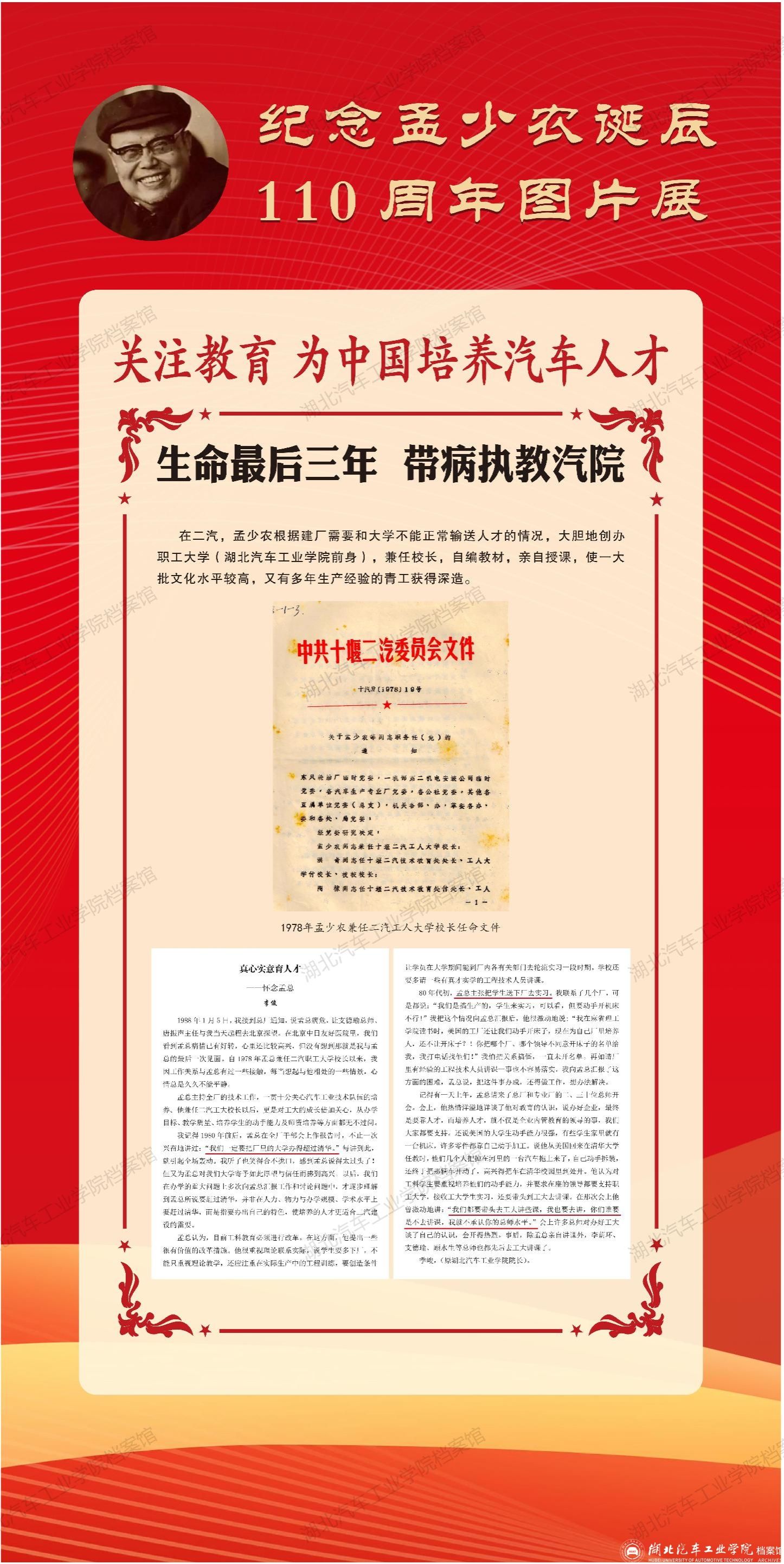 科教育魂润桃李 汽车强国铸丰碑——纪念孟少农诞辰110周年图片展